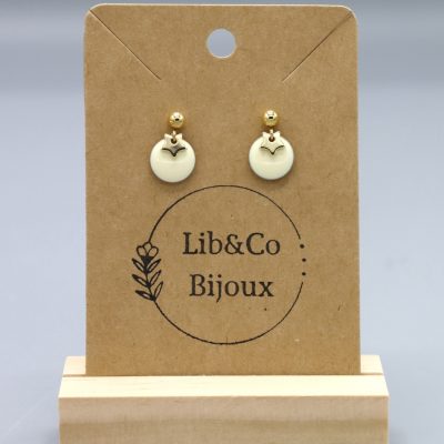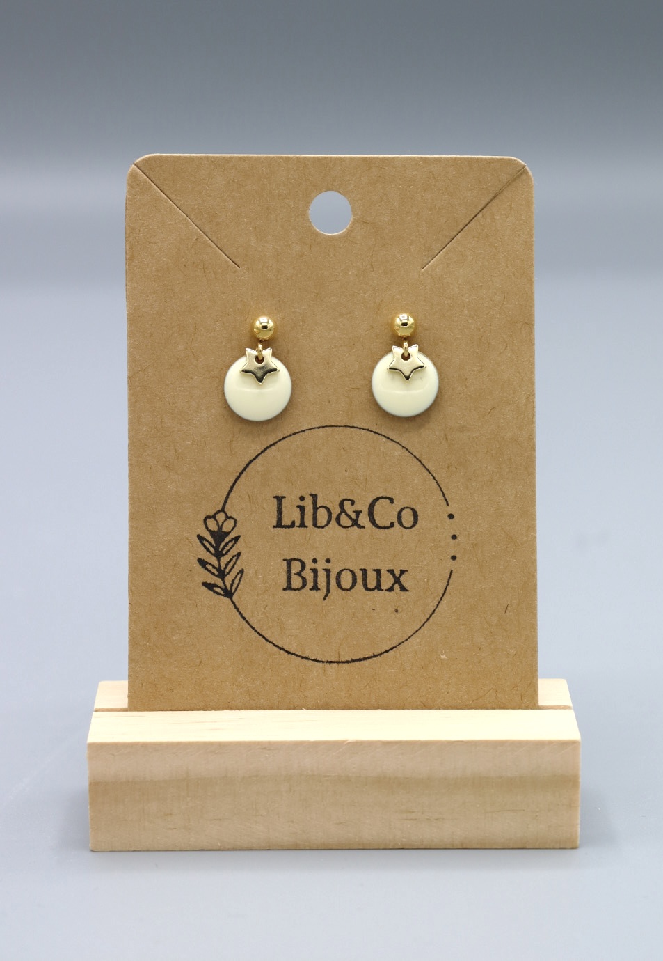Boucles en acier inoxydable. Sequin de couleur en email époxy et étoile ou éventail. Existe en Argenté ou doré.