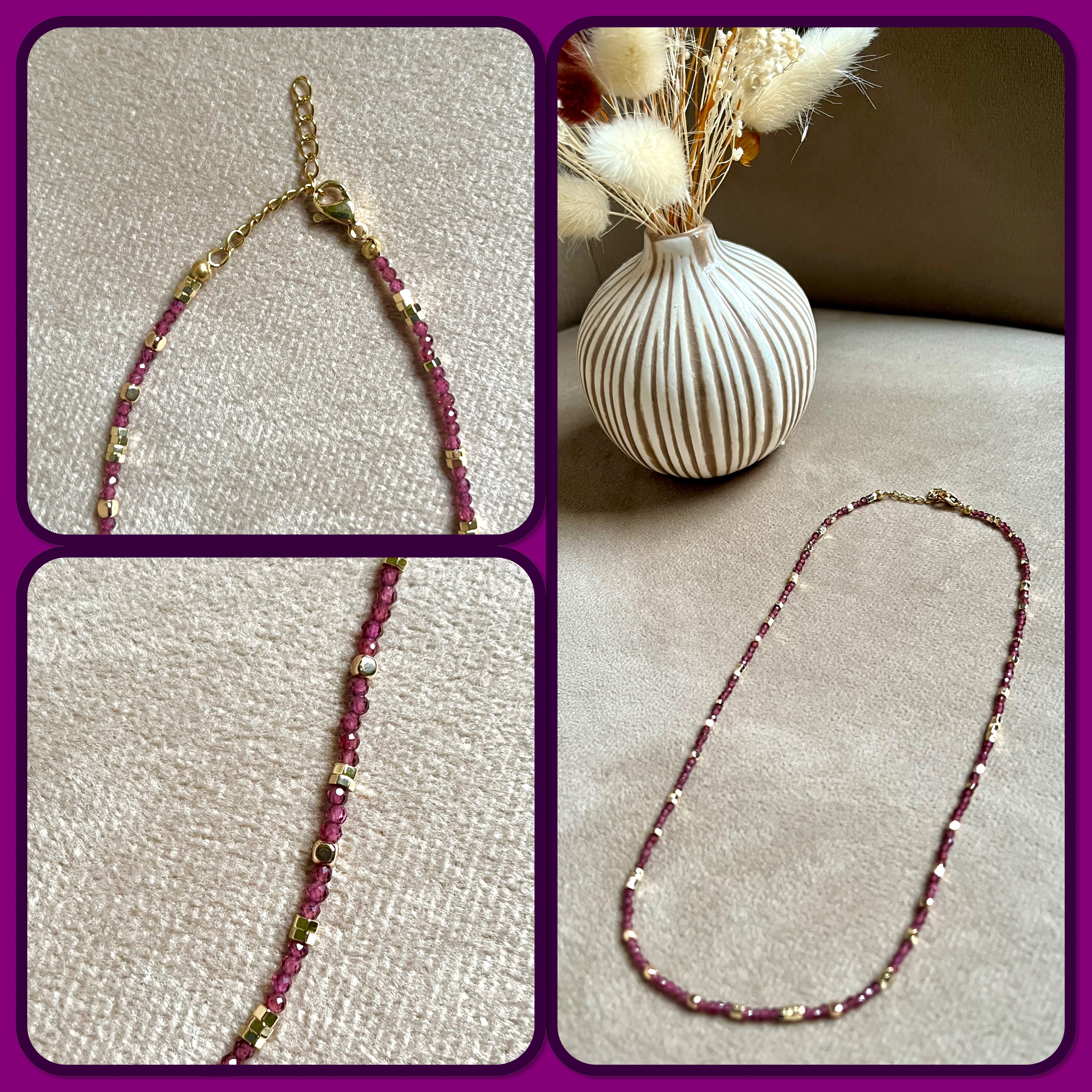 fermoir et perles en acier inoxydable doré ou argenté.